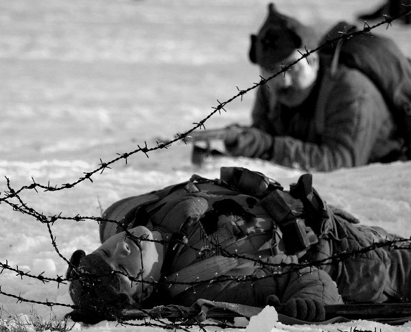 на каске терновый венец,