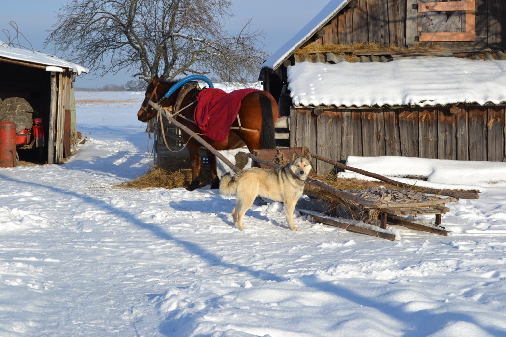 Зато собака, лошадь, дровни...