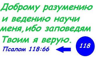 Господи научи меня и членов моей семьи молиться всем сердцем нашим,помилуй нас по слову Твоему.Господи помоги нам размышлять о путях наших и обращать стопы наши к откровениям Твоим.Господи помоги нам быть общниками всем боящимся Тебя и хранящим повеления Твои.Слава Тебе Господь,что милости Твоей полна земля,научи нас уставам Твоим.Благодарю Тебя Господь,что Ты благо сотворил нам по слову Твоему.Господи доброму разумению и ведению научи нас,помоги нам веровать Твоим заповедям.Господи прости нас за заблуждения наши,помоги нам хранить слово Твое.Слава Тебе Господь,что Ты благ и благодетелен.Господи помоги нам всем сердцем хранить повеления Твои.Слава Тебе Господь,чито руки Твои сотворили нас и устроили нас,вразуми нас и научимся заповедям Твоим.Слава Тебе Господь,за праведные суды Твои и за справедливое Твое наказание нас.Господи,да будет же милость Твоя утешением нашим,по слову Твоему к нам.