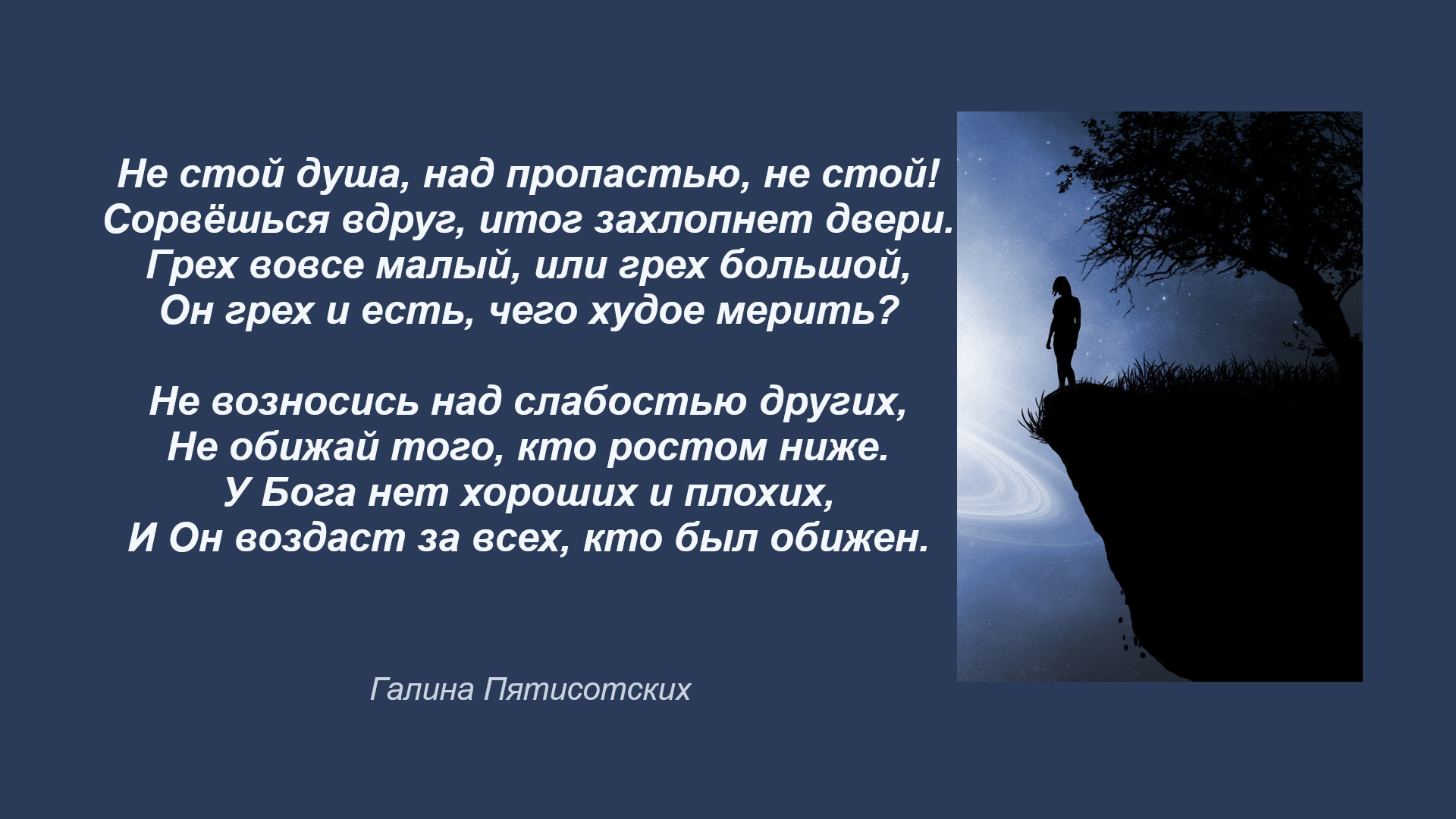 Не стой над пропастью, сорвёшься вдруг,