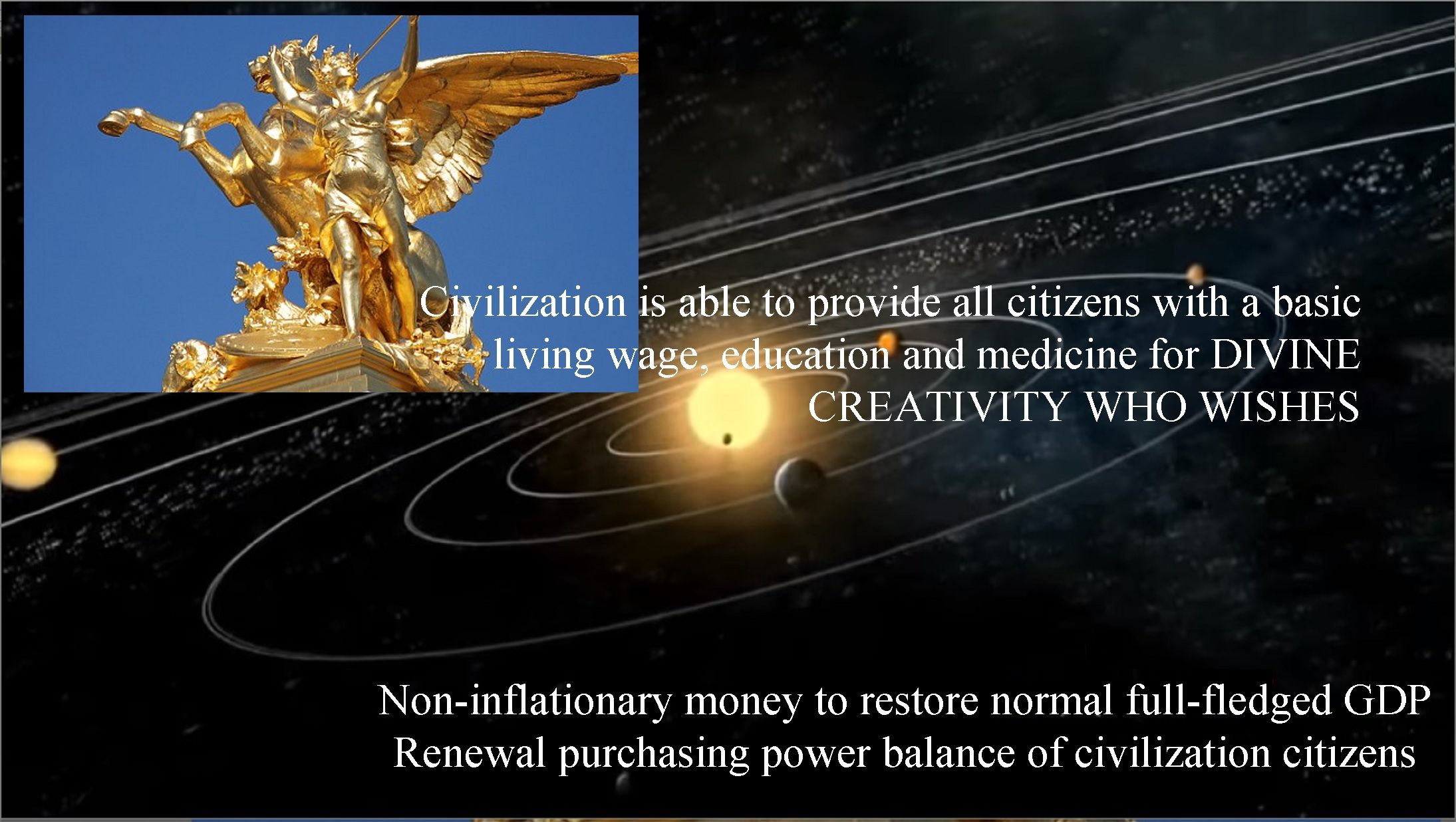 Цивилизация планеты Земля имеет божественный потенциал развития, граждане цивилизации уже давно обеспечили всему обществу базовые блага: