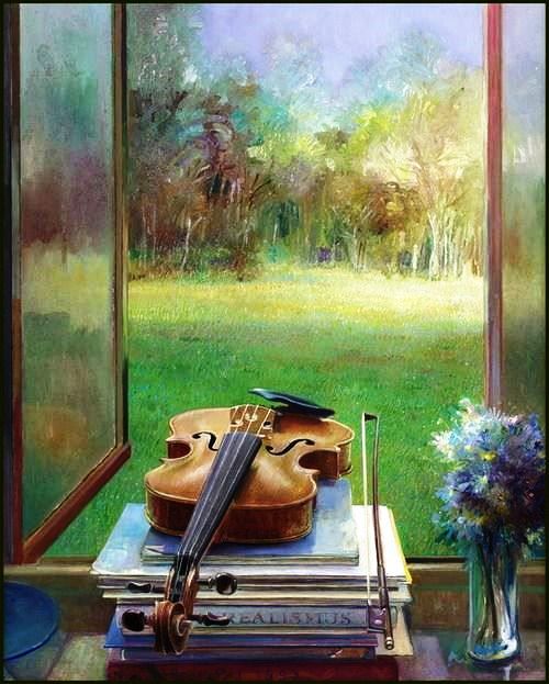 Сверкает скрипка на солнце лаком вся,