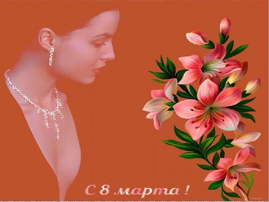 Иринушка, поздравляю с Женским днём 8 марта. Желаю в этот день, быть самой красивой, самой счастливой. Все звёзды в небе и цветы к ногам. Пусть не меркнет в твоём сердце любовь, к тому, кому отдала своё сердце. С нежностью и поклоном Ваш Олег.