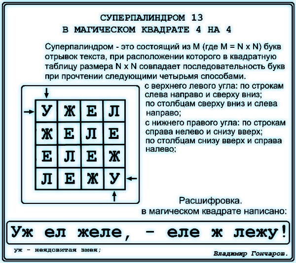 Суперпалиндром 14 в квадрате 4х4