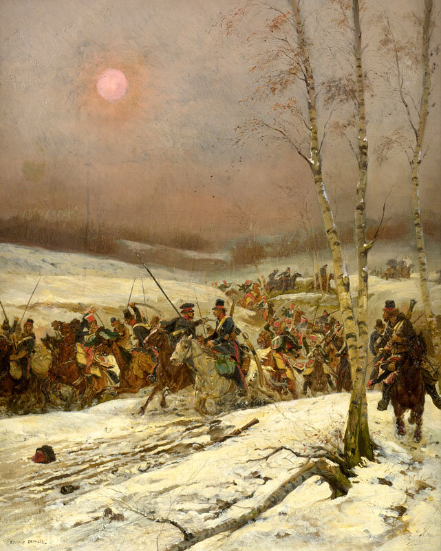 Казаки aтaкуют гвардию отступающего Наполеона в русской кампании