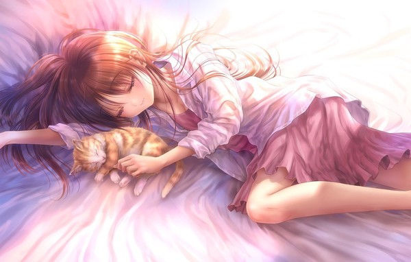 В кроватке с кошкою лежу.