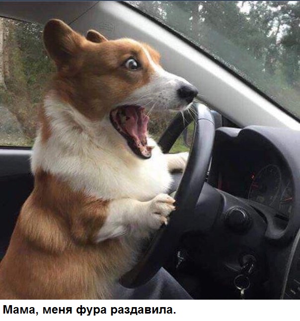корги устроился шофёром. Потрошки к фото