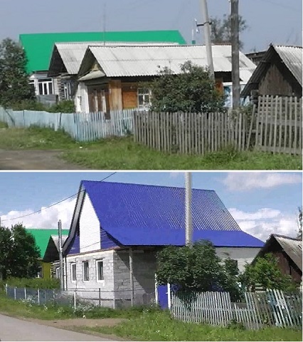 Улица Социалистическая, вверху дом нашего деда, а внизу на его месте уже стоит совсем другой дом. Село Новобелокатай, Башкортостан.