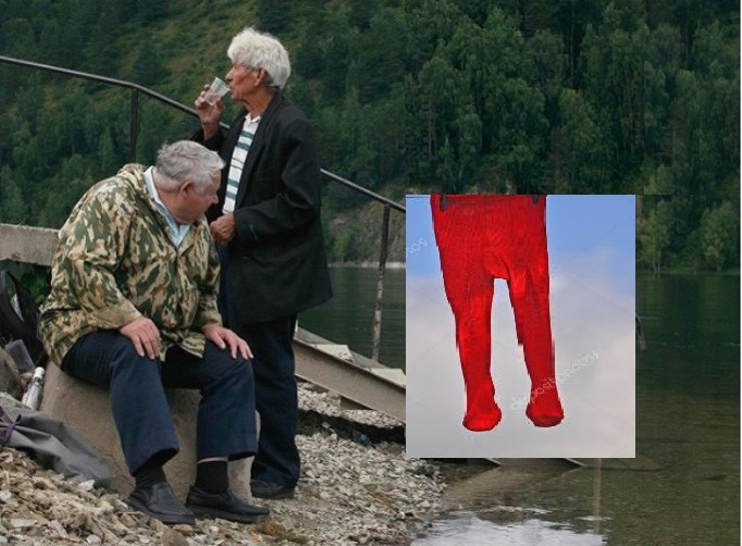 (За заплаткой висят красные колготки)