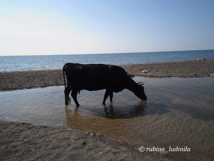 Пьёт воду из речки, цветы собирает,