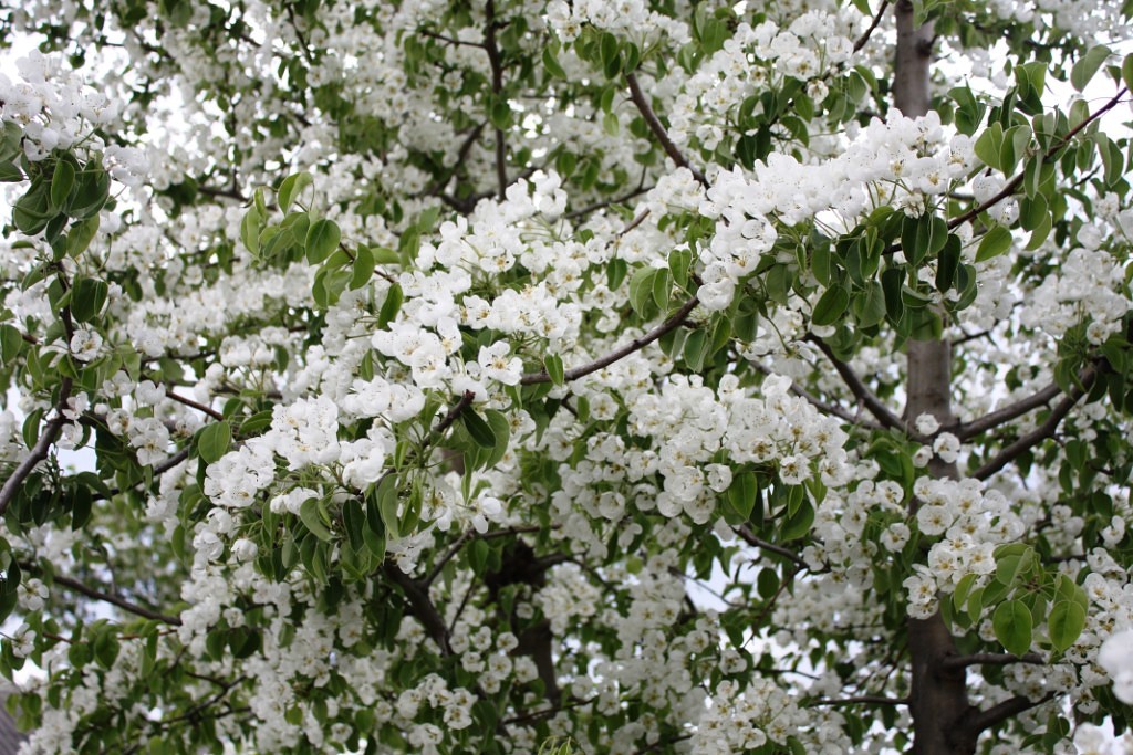 Деревьев белые каскады,