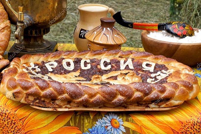 на всех один пирог на блюде.