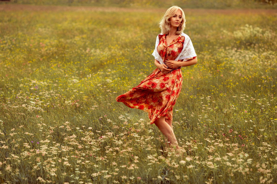 Поток волос струится по плечам,