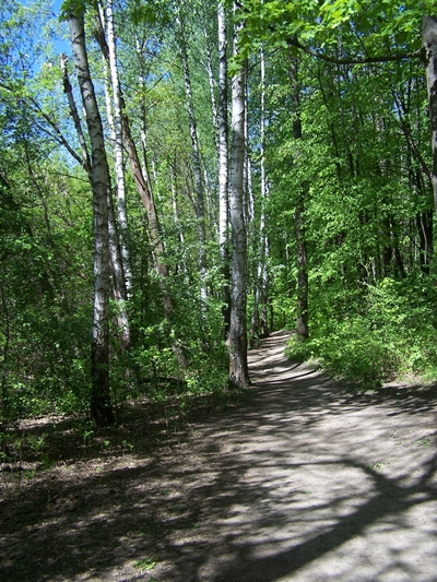 Я вглубь качусь на байке по тропинке.