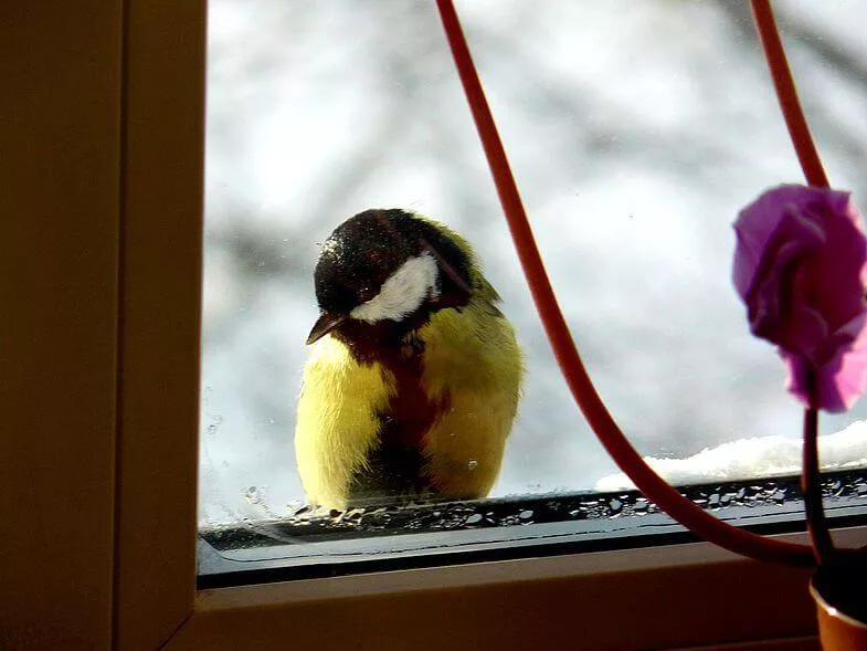 Синица сидела в кормушке за окном. Смотрю, кошка на задних лапах замерла глядя сквозь стекло. Глянул, синица сидит. Взял её, она не сопротивлялась.