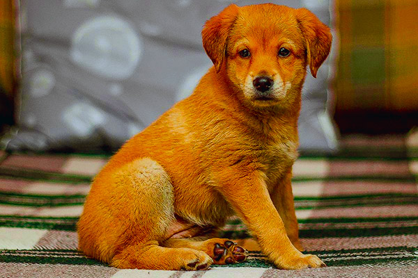 Вижу в ящике щенок.