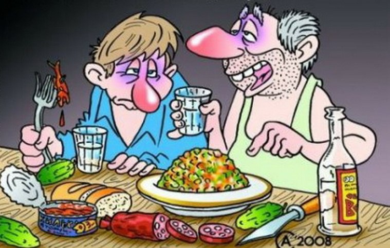 -Не закусывай,сынок, прошу,салатом!