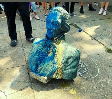 *** Фото из Сети: снос памятника Колумба в США (М. Ч.)