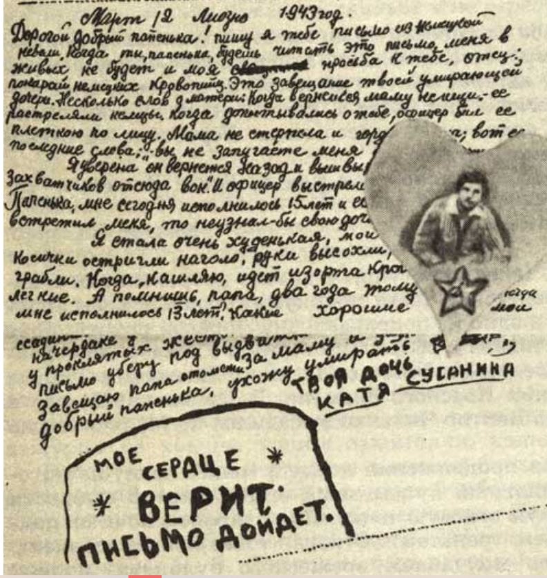 И закончилось оно окончательно в день ее пятнадцатилетия. В своем прощальном письме девочка описала всю свою жизнь в рабстве — сумбурно, перемежая тяжелые строки со счастливыми детскими, довоенными еще воспоминаниями, а затем покончила жизнь самоубийством. Это было 12 марта 1943 года. До освобождения города Катя не дожила меньше года...