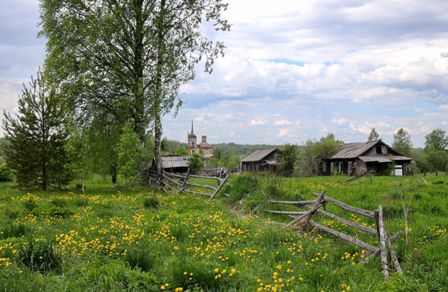 С косогора бежит деревенька