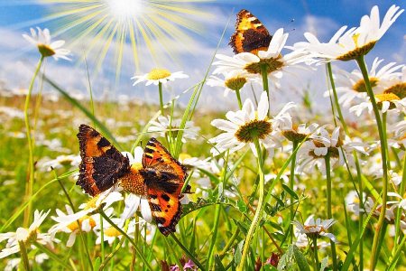 Над ними бабочки летают и порхают.