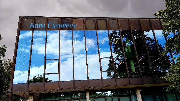 здание отражает голубое