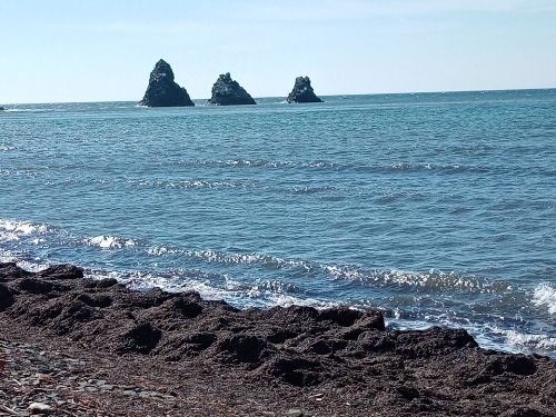 Только в море в отдалении гордо три скалы стоят.