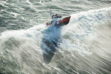 Маленькое судно - победитель в схватке,