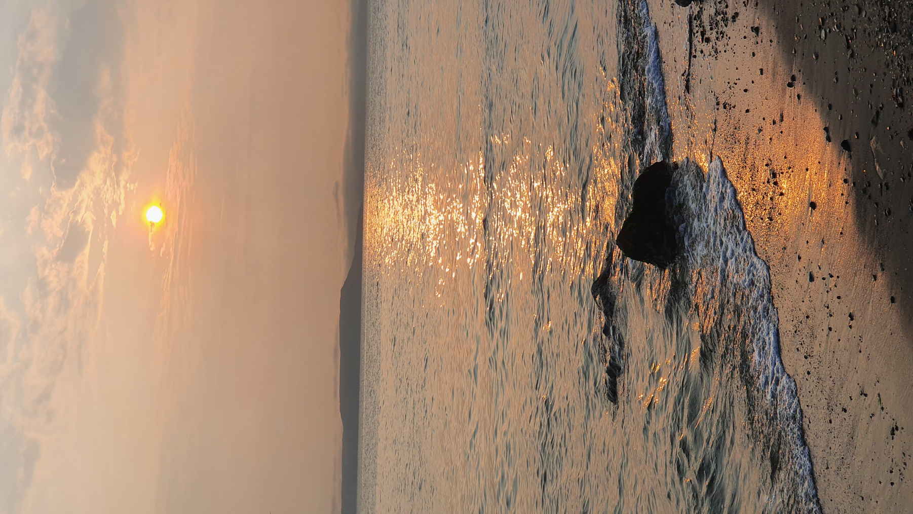 Шаловливо лаская пляж и целуя камни.