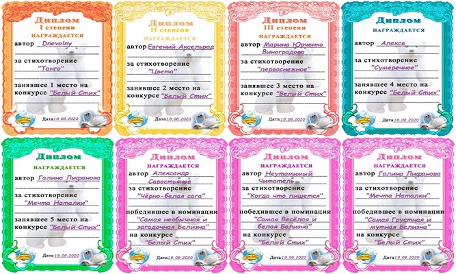 Цветные дипломы авторам белых стихов