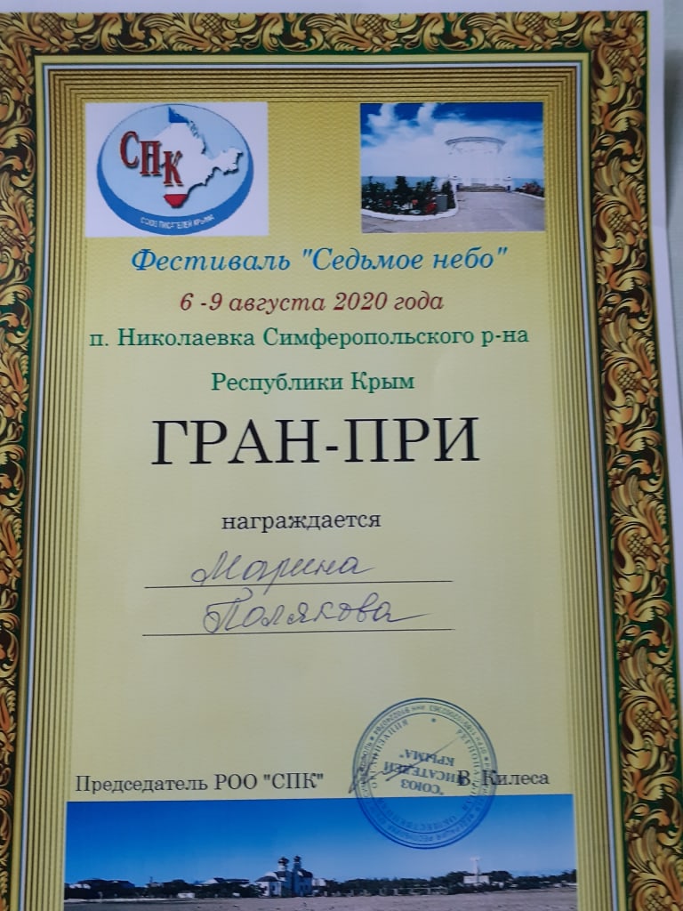 Наверное, звёзды этого августа были на моей стороне – я стала обладателем Гран-При Фестиваля. Это не просто счастье. Это эйфория, восторг, полёт, высота, это – седьмое небо!