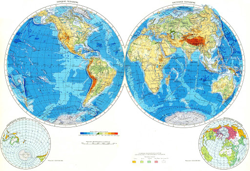 У карты двух земных полушарий