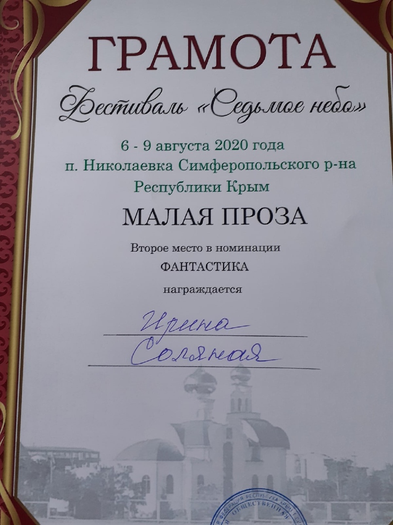 Она завоевала 2 МЕСТО в номинации "Проза" на фестивале "7 небо".