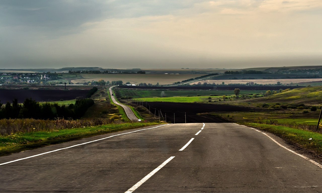 До горизонта лентой серою, блестит асфальт