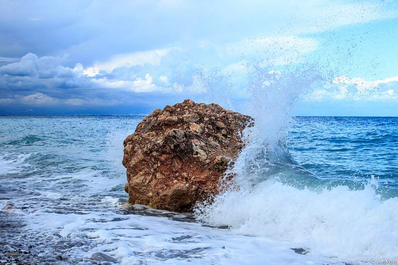 И о камень с огромной силой волны бились!