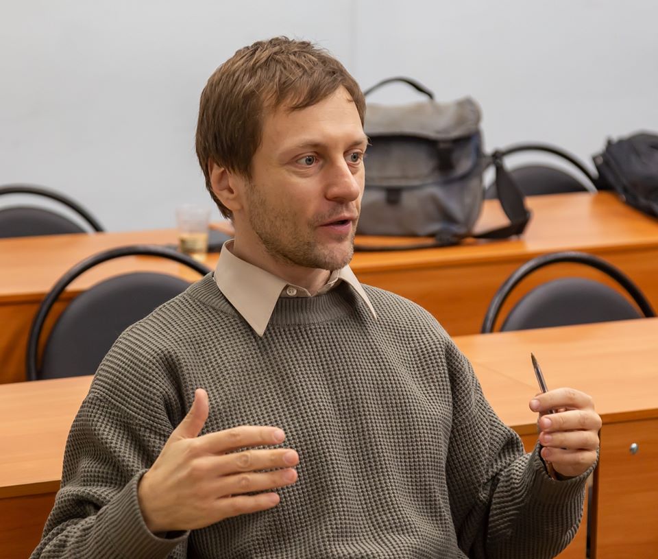На фото Юрий Тубольцев на семинаре в Литературном институте.