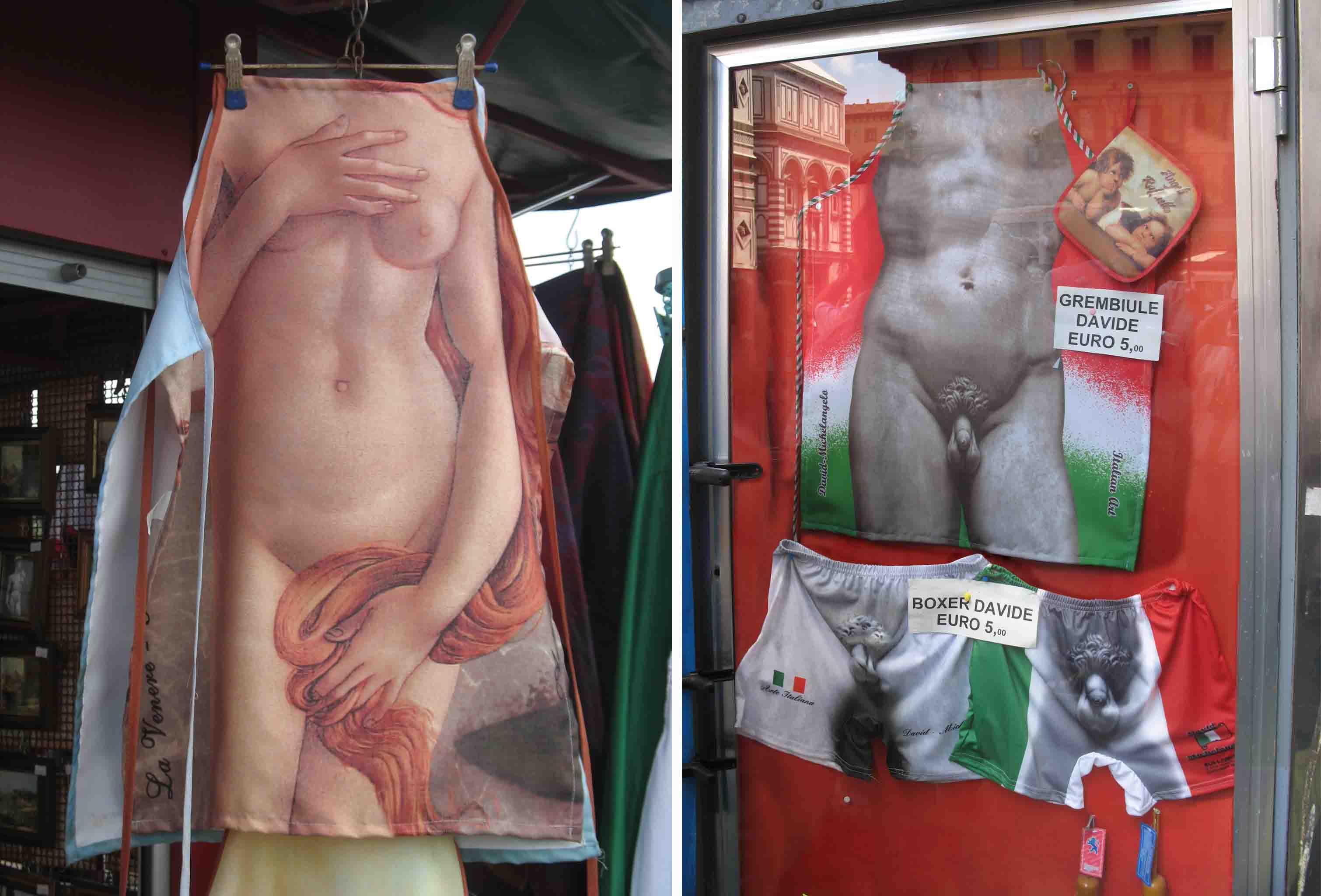А рядом – ещё более креативные творения: «фартук для домохозяина» … на тему статуи «Давида» Микеланджело…