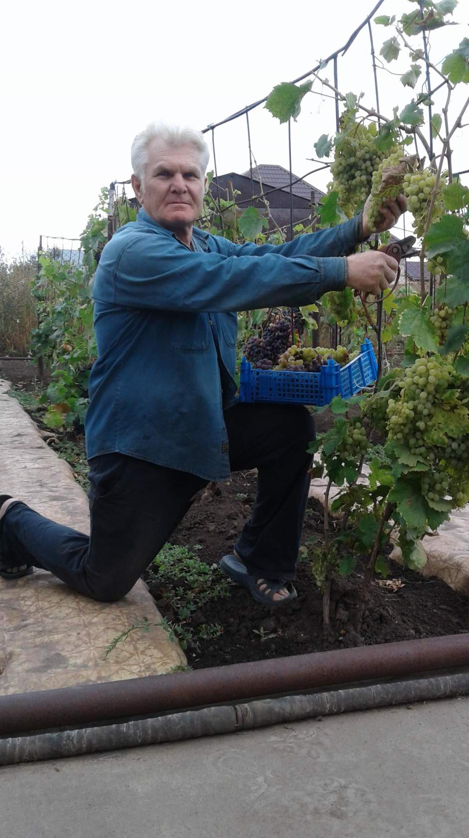Режет кисти винограда...