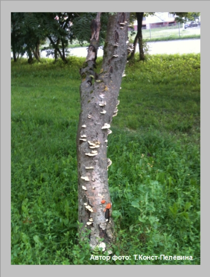 Грибы, как бабочки на ствол спустились