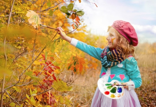 359. Осень рисовала акварелью по листьям