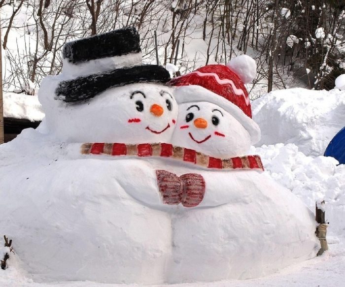 Снеговики, как часовые,
