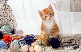 стала нитками играть.