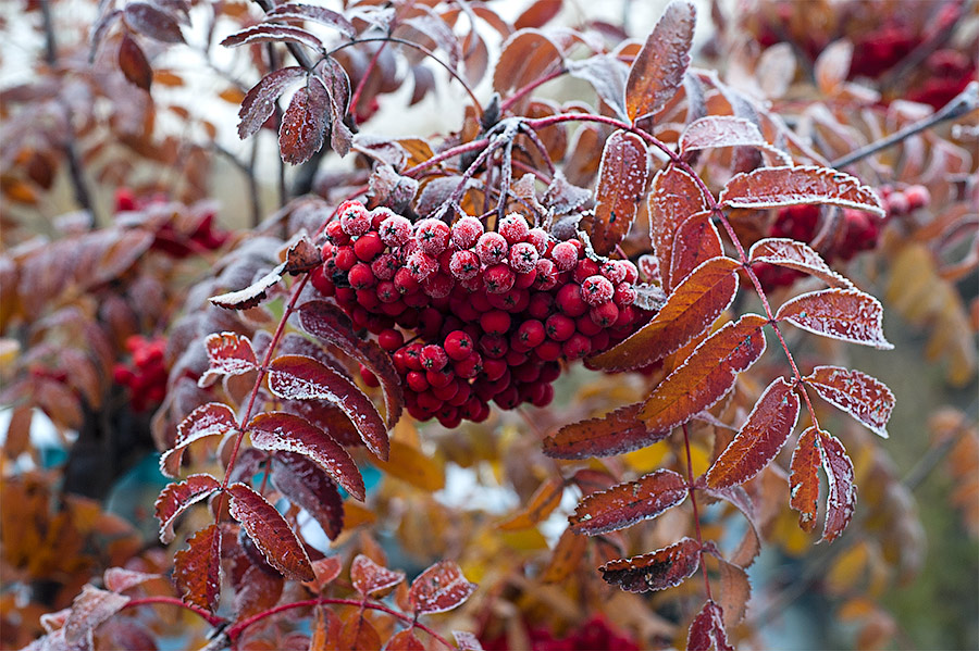на рябине горят ярко кисти