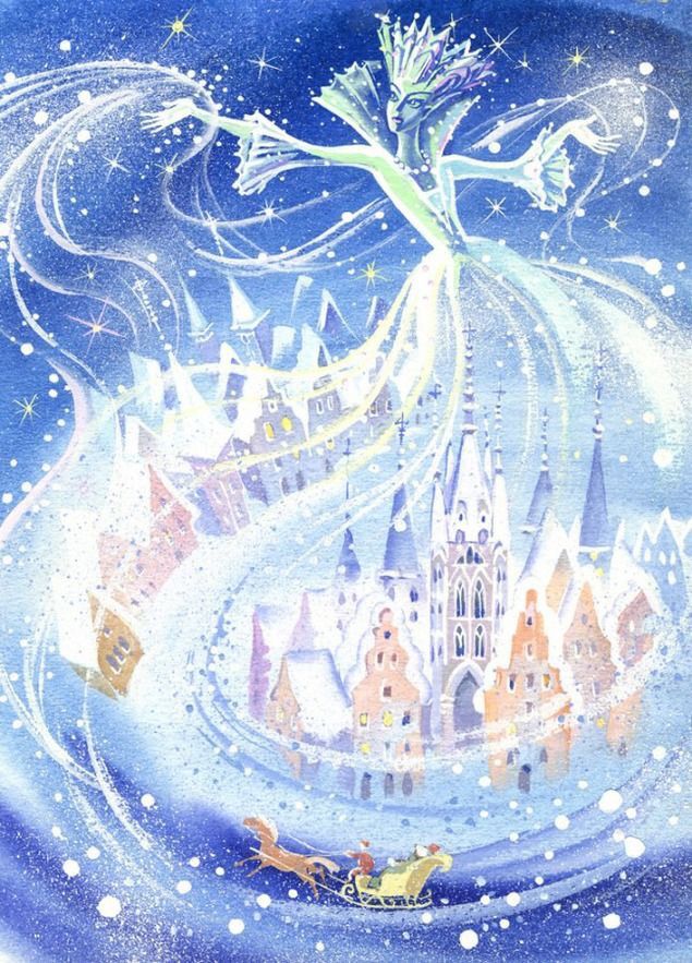 В наряде снежно-голубом.