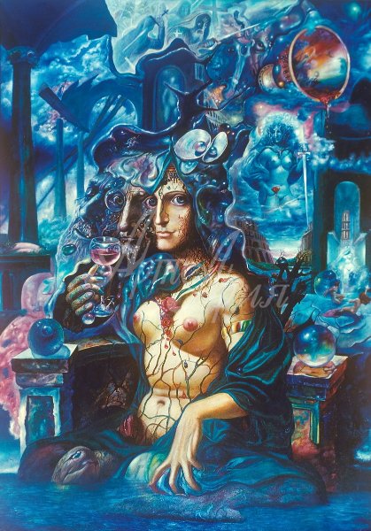 Достал тут Святогор свой огромный меч и указывает им на белоснежную шапку Эльбруса. И зажглась искра на конце меча. В один миг рассек Святогор своим мечем туман, и образовался некий проход в нем. Этот проход сиял радугой и мерцал. Какая-то сила потащила меня через него, и вдруг я оказалась в огромной пещере. Впереди глухая стена. Но снова показался Святогор, словно тень на этой стене и могучей рукой сдвинул камень, подобный горе.