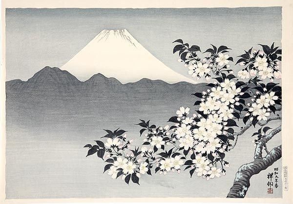 Фудзи и сакура японская гравюра Охара Косон