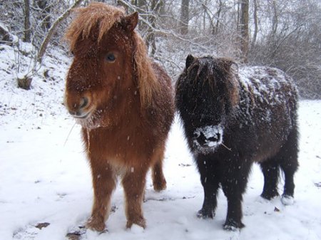 На фото - две пони породы хаккайдо.