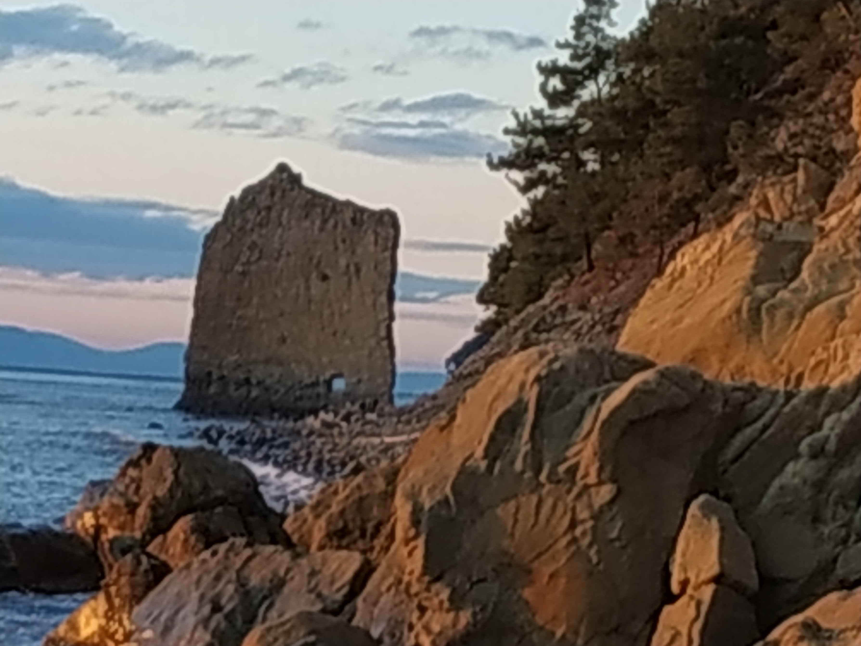 Скала у берега стоит.