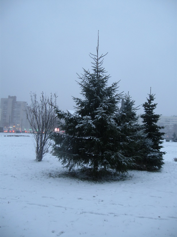 Сад шикарный подёрнут инеем.