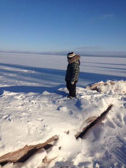 На фото - внук Фёдор у берега Братского моря - мёрзнешь?!